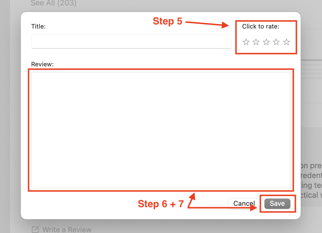 - Scroll down and tap ‘Write a Review’ to write your honest review NOTE: Be sure to remember the title of your review, you’ll need it for the next step.